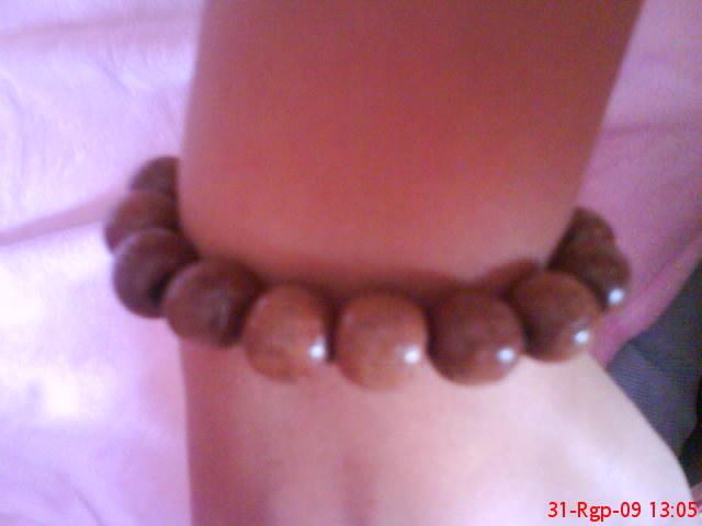 rudu mediniu karoliuku apyranke su ivairiais zenklais