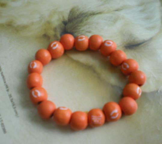 Apyrankė iš apelsininės spalvos karoliukų su simboliais :) Nenešiota.