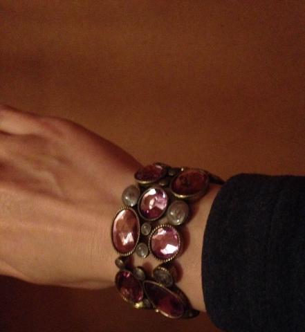 Alyvų spalvos su pilkomis detalėmis apyrankė, nešiota vos porą kartų, visos akutės vietoje, apyrankė ant gumelės, tad lengvai užsideda, pirkta iš Avon.