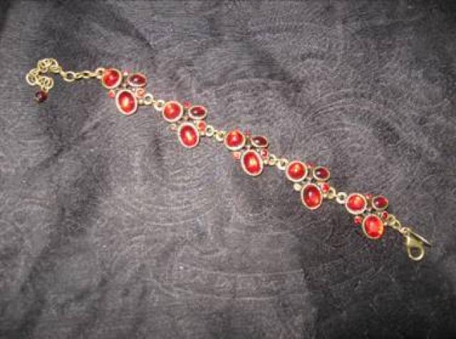 Nuostabi Ibero apyrankė vakarui - raudoni akmenukai labai blizga ir dieną, ir vakarą (dėl blykstės nesimato, bet blizga kaip 2, 3 nuotraukoj).