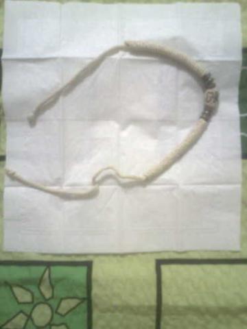 Iš medžiagos su karoliukais per vidurį.Porą kartų užsidėjusi buvau.