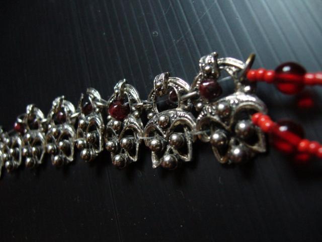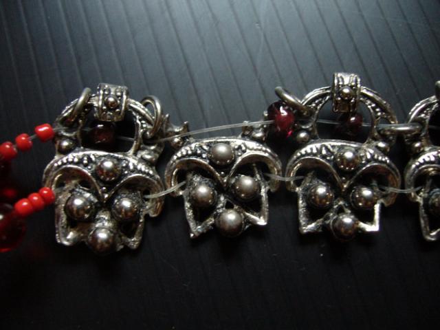 viena detale luzusi. buvo be uzsegimo, tai perdariau, kad butu galima nesioti, taip atsirado tie stiklo karoliukaii ir granatukai :)