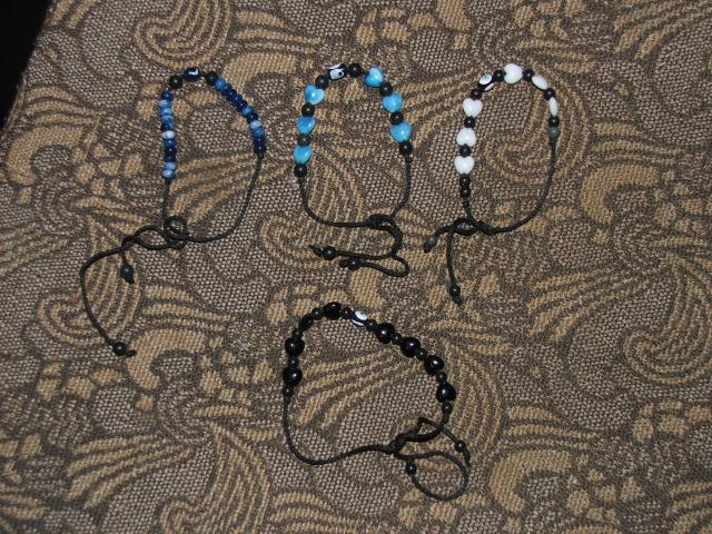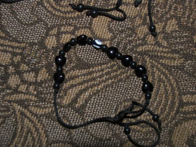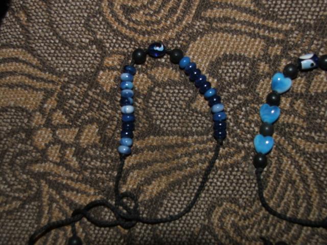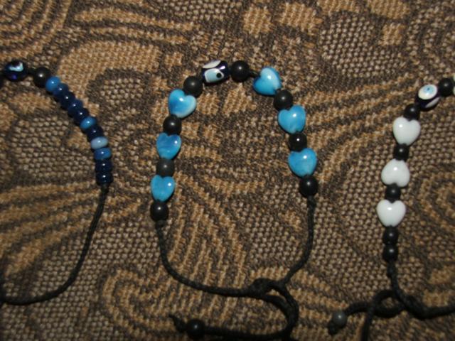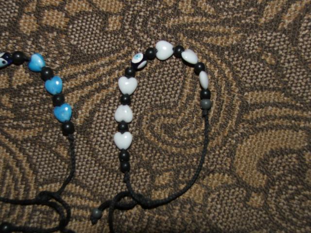 Prisipažinsiu - nežinau, ar tas paveiksliukas vadinamas "laimės akim". Žinau tik tiek, kad jie iš Turkijos. Baltas, mėlynas, žydras ir juodas. Neatsiriša. Baltą patariu imti mažų rankyčių savininkei - kitaip gali neįlįsti.