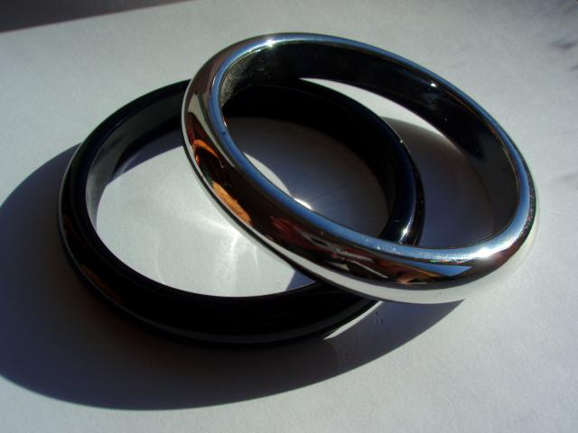 Dvi visiškai naujos apyrankės juoda ir sidabrinė. Vienos kaina - 10 lt.