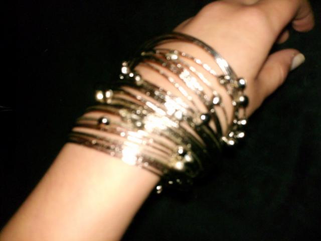 Naujos, nedėvėtos, sidabrinės spalvos 45 apyrankės su barškanciais rutuliukais.