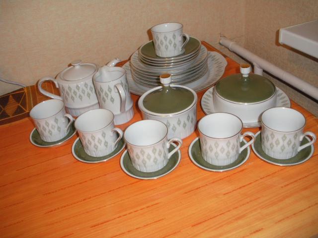 Gana senas(46m.) vokiskas servizas.5 eu Vienas puodelis įskeltas(foto-6).Cukrinė nedaug įskelta(foto7).