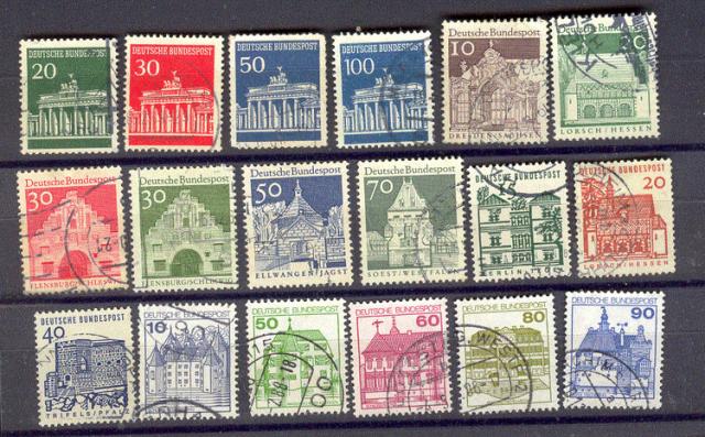 Keletas skirtingų serijų Vokietijos architektūros ženklų.