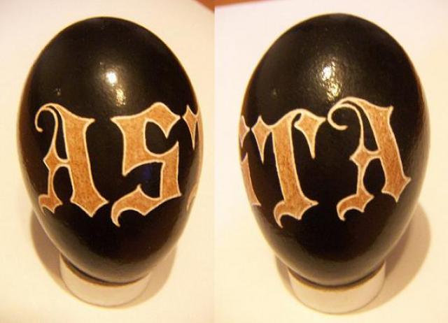 Graviruotas kiaušinis. Galiu padaryti jūsų pageidaujamą paveiksliuką, tekstą, ornamentą ir kt. Pilną darbų - pavyzdžių galeriją galiu atsiųsti, jeigu parašysite man į kurybingas@yahoo.com