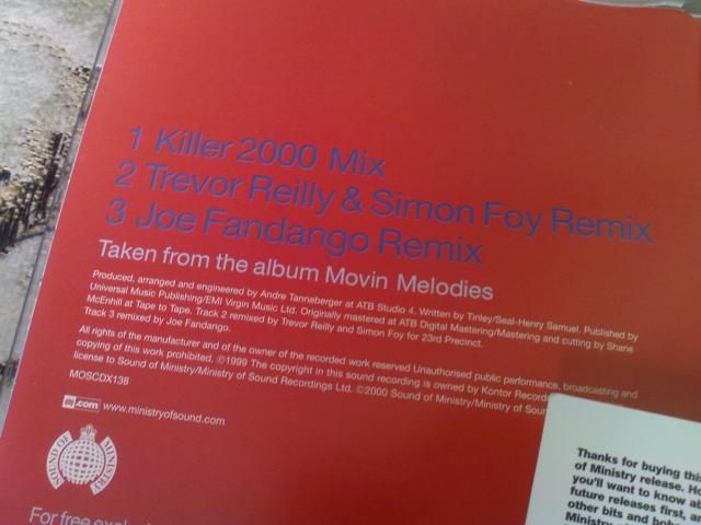 atb - killer originalus cd, tracklistas nuotraukoje.