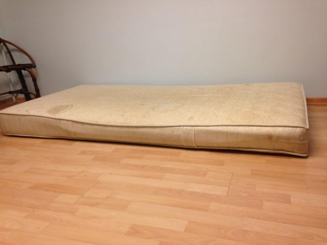 Atiduodamas viengulis čiužinys. Prastokos būklės, bet gulėti galima ir nugaros skausmų nesukelia:)
