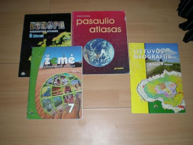 Žemė atlasas 7 klasei Europa atlasas 8 klasei Lietuvos geografijos atlasas 9 klasei (PARDUOTA) VISUOTINIS PASAULIO ATLASAS "pradai" leidyklos (labai geras, storas leidinys)