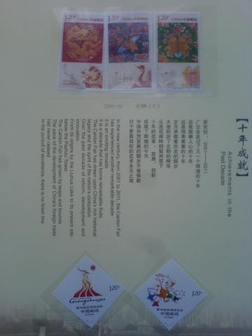Atminimo albumas, skirtas ,,110-osios sesijos Kinijos importo ir eksporto mugėje". Viduje ant kiekvieno puslapio pašto ženklai kolekcionavimui. Paskutiniame psl. vienas pašto ženklas permatomas.