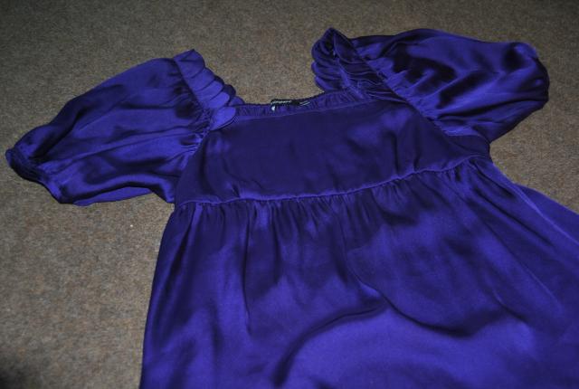 Violetinės spalvos, dydis manyčiau nuo M iki L, bet tiktų ir S/M.