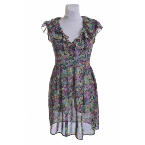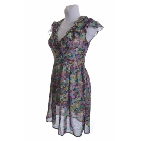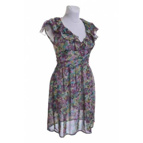 Nusidėvėjimo ar defektų nėra. Užtraukiama šone, persišviečia Dydis: UK 10, S/M Plotis nuo pažasties iki pažasties (matuojant ramybės būsenoje ant stalo): 42 cm, tempiasi iki 48 cm Liemens plotis: 36 - 37 cm Klubų plotis: 59 - 65 cm Ilgis nuo peties iki apačios: 91 cm