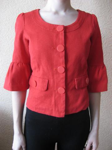 Madingas raudonas švarkelis iš grynos medvilnės, be defektų, nenuskalbtas - tiesiog puikus. Spalva dviem tonais ryškesnė - nuotrauka spalvos neatspindi. Dydis: 8 (36)