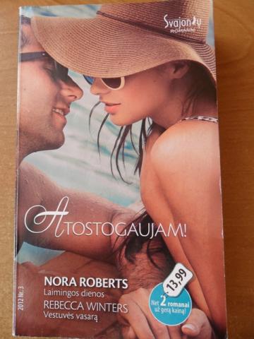 Nora Roberts „Laimingos dienos“ Hilari Baksterregis turi viską,apie ką kadaise svajojo,-ji gyvena Niujorke ir yra garsi manekenė.Tačiau kodė jai vis dažniau norisi ištrūkti iš spindinčio didmiesčio ir grįžti pas tėvus,į gamtos prieglobstį?Ko stinga Hilari,kad pajustų gyvenimo pilnatvę ir jos dienos iš tieų taptų laimigos? Rebecca Minters“Vestuvės vasara“ Rachelė Valentain važinėja po vynuogynus ir perka vynus prašmatniems savo šeimos restoranams Bela Lucia.Lukas Šartjė augina vynuoges ir daro vyną.Nuo