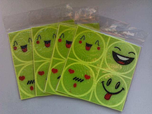 Visiškai nauji atšvaitai - lipdukai. Viename pakelyje keturi lipdukai. Lipduko matmenys: 5cm x 5cm. Pakelis 1€. Visi už 3€.