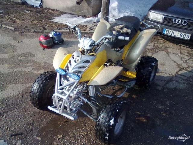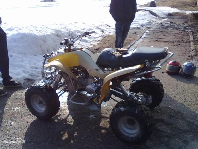 Keturratis geros bukles,aisku ne naujas.Vaziuoja puikiai,greicio daug neturi,bet kaip 110cc turi pakankamai galios,yra naujos galynes padangos,naujos zvaigzdynes bei lenciugas,mazos kuro sanaudos,du zmones veza drasiai.Reiktu pasikeisti zvake nes jau senai nekeista,o kaip pakeisi tai dirbs motoriukas dar geriau,nors ir dabar gerai dirba,nusiorinti galinius stabdzius ir pasikrauti akuma,o daugiau viskas veikia,jis yra pusiau automatas 3 i prieki,laisvas ir atbulinis.Moto be popieriu,nes neregistruojamas