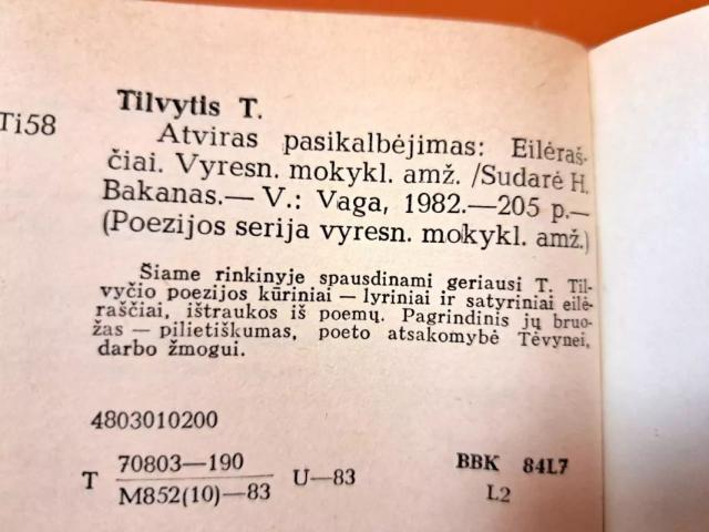 1983m.Teofilis Tilvytis. Eilėraščiai, nugarėlė paklijuota