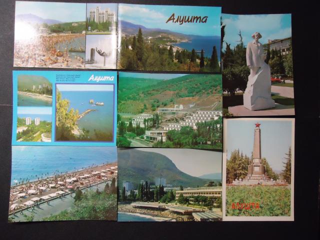 12 atviruku rinkinys apie ALUŠTA. 1976m.1979m.,1980m.,1981m.,1984m.,1987m.,1988m.,1989m.
