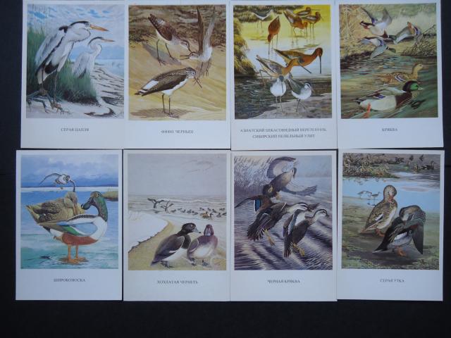 piešti atvirukai su pauksciais. 16 vnt. serija.1984m.