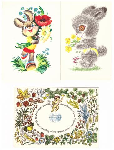 Pirmas atvirukas be užrašų, antrasis 1969m. Trečiasis R. Balčiūnienė 1978m.(užrašytas). Dėl daugiau informacijos rašykite.