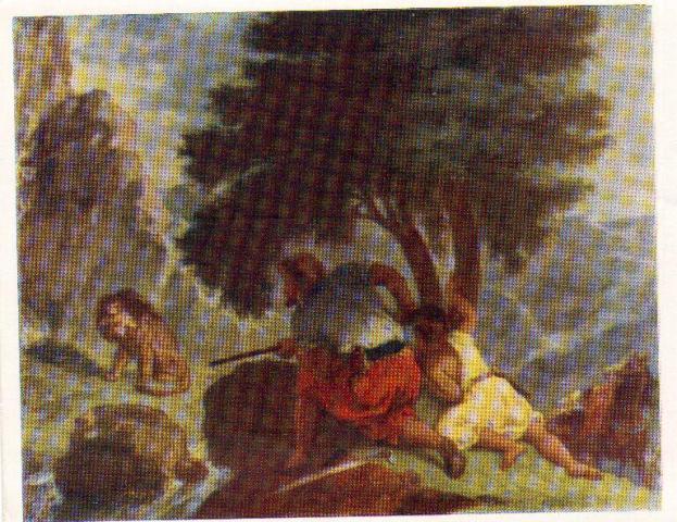 1960-tųjų metų atvirukas iš meno serijos. Delakrua "Liūtų medžioklė Maroke". Neužrašytas, tačiau senatvė truputį matosi.