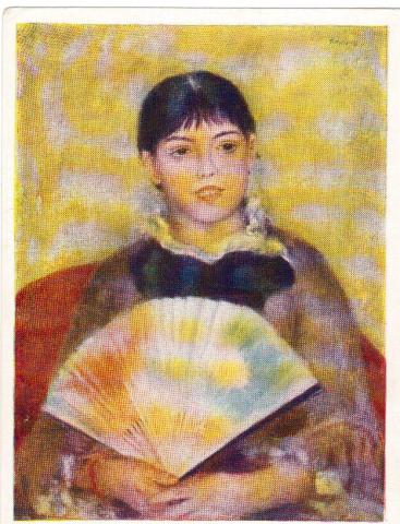 1960-tųjų meno serijos atvirukas. Renuaras "Mergina su vėduokle".