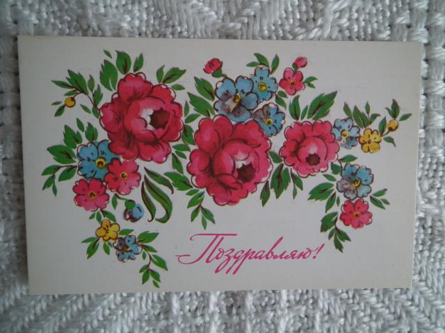 Neužrašytas atvirukas užrašas rusu kalba Sveikinu. Kaina siūlykite.
