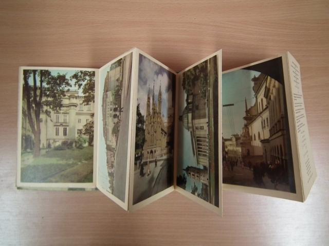 Atvirukų komplektas "Vilnius". Atvirukų rinkinį sudaro 32 atvirukai. Atvirukai sujungti vieni su kitu. Ant atvirukų atspausdintas tekstas 6 kalbomis. Spausdinta Užsienio kalbų literatūros leidykloje, Maskva.