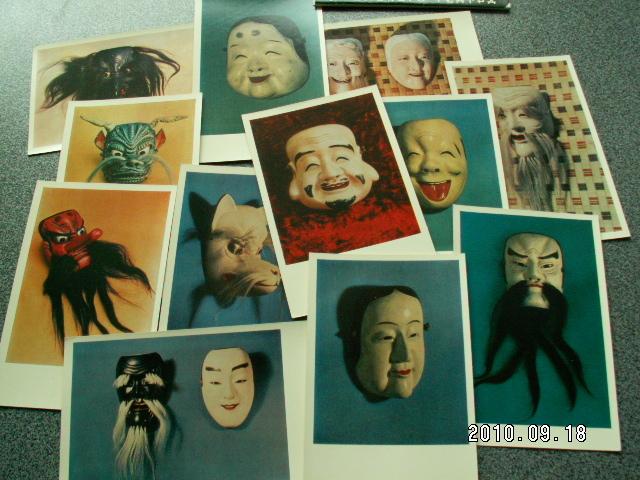 Atvirukų rinkinys Japoniško teatro kaukės, 12 atvirukų