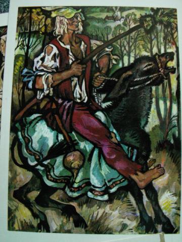 Šarlis de Koster. Legenda apie Ulenšpygelį ir Lamą Gudzaką. 16 atvirukų, rusų k. antroje pusėje aprašomos scenos.