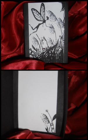 popierius,rankų darbas,įklijuotos stiklinės akutės.Išmatavimus jei reikės parašysiu kiekvienos,galiu išpiešti ir voką(jei yra butinybė tai atvirutei)nuotraukoje matot atvirutės viršutinę ir vidinę pusę.