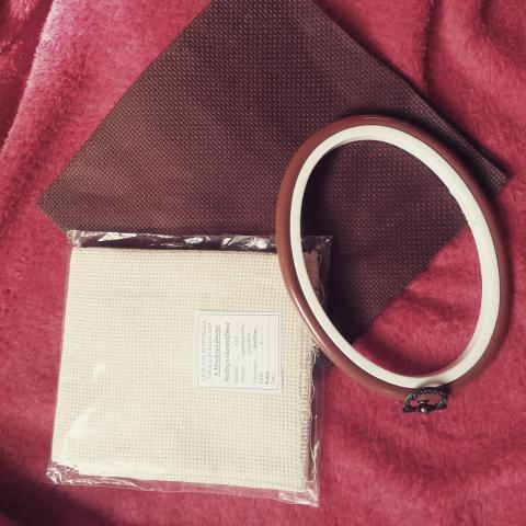 Audiniai ir lankas audinio istempimui siuvinejimui kryzeliu