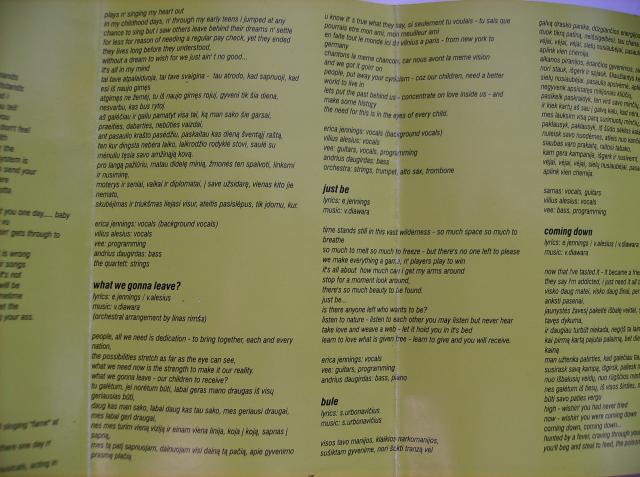 Nesudrožta, groja puikiai. :) Vidiniame lankstinuke yra visų albumo dainų tekstai.