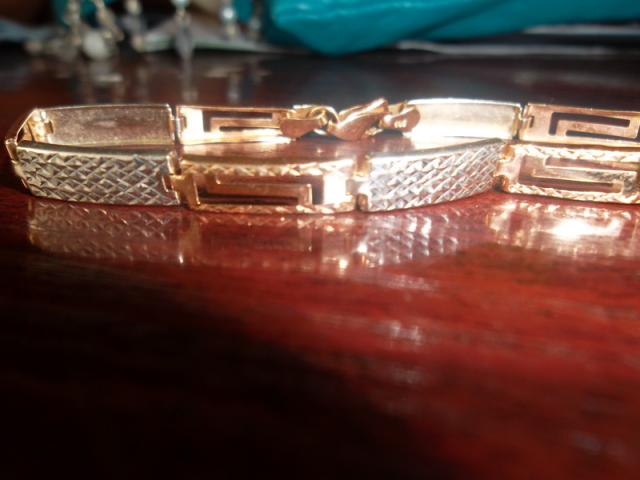 labai grazi apyranke, stipraus rasto, su baltu auksu...Atrodo labai prabangiai...ilgis 18,5 585 svoris 4,3gr.