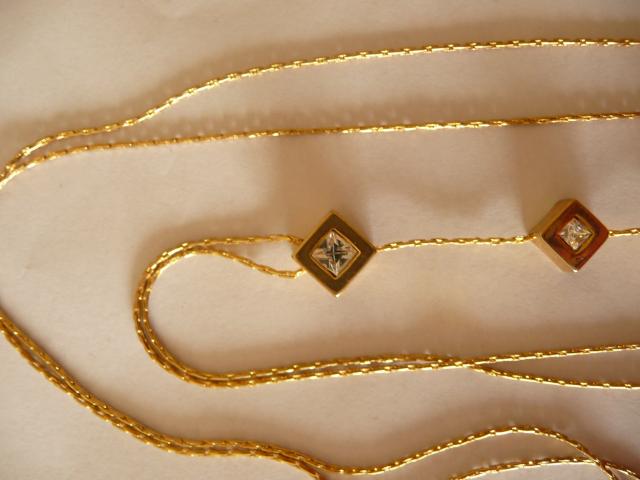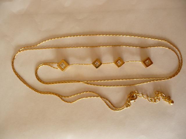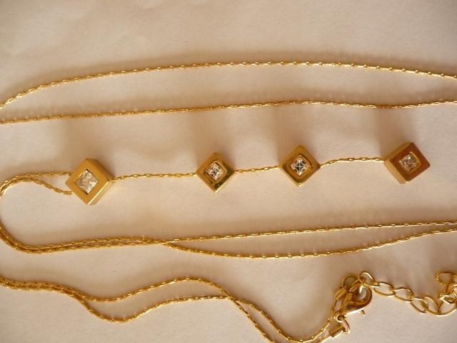 Auksinė stileiva - ilga auksinės spalvos grandinelė su 4 pakabukais su cirkoniais.