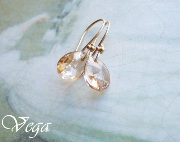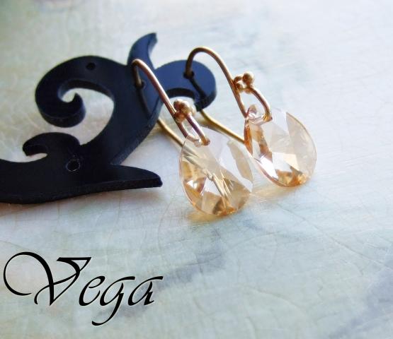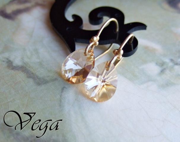 Swarovski kristalai golden sh. 12 mm, su kabliuku 2,6 cm. Paauksuotas sidabras