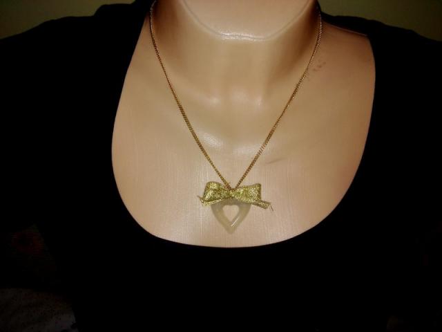 Aukso spalvos grandinėlė ir pakabukas - širdutė su kaspinu TIK 10lt!