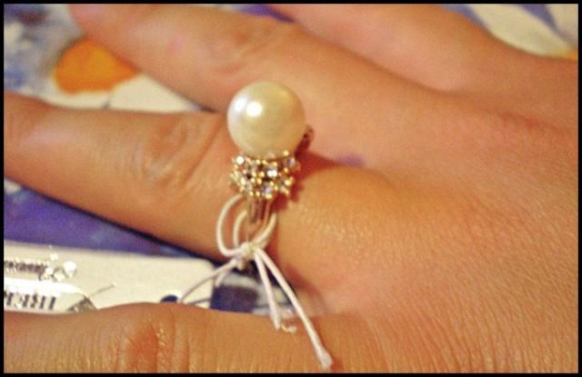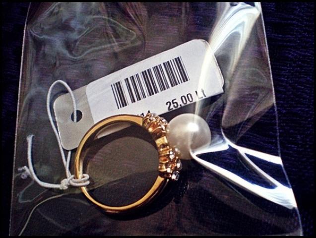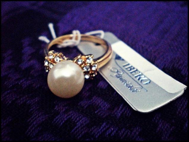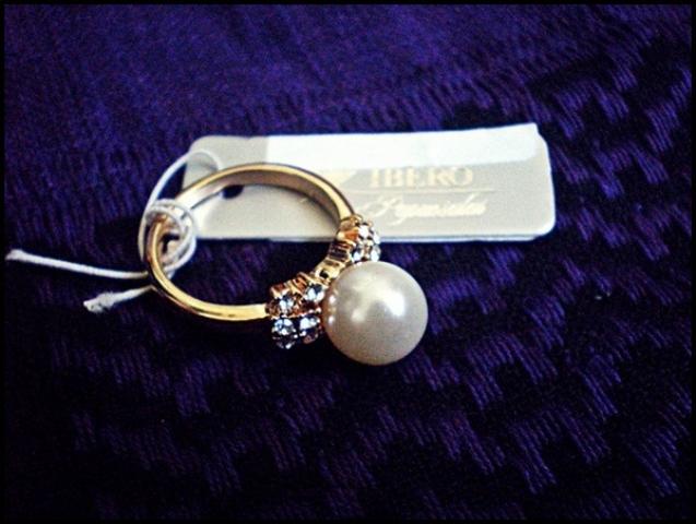 VISIŠKAI NAUJAS Aukso spalvos žiedas puoštas skaidriais akmenukais ir "perlu". Dydis: 17 - 18.