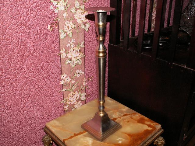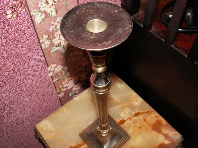 Aukšta metalinė žvakidė.