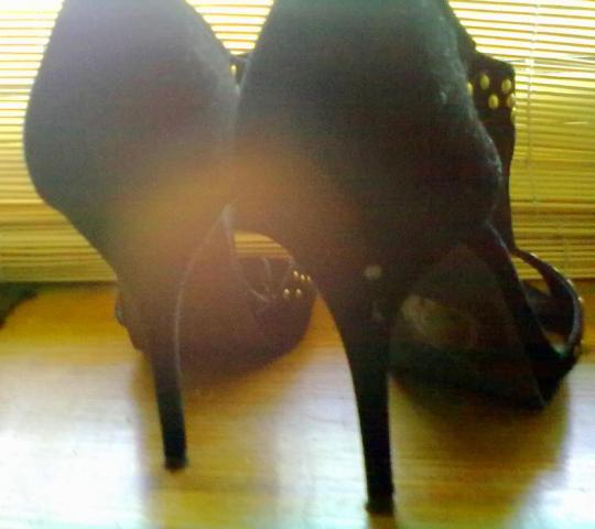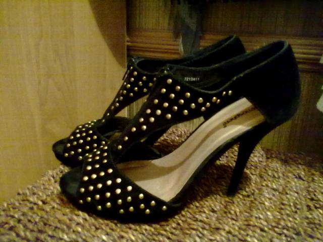 (keisciau tik i kitas mazesnio kulniuko) aukstakulnes basutes 39dydis zamsines su auksinemis kniedytemis nesiotos nedauk,nes man peraukstos.kulniukas 11cm. turi defekteli(paskutine foto tik neryskiai isejo) 1 batelio kulniukas kazkur uzkliuvau ir zamsas pasitryne,uzdazius tikrai nieko nesimatytu,siap labai smagios graziai atrodo.