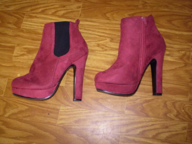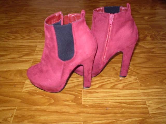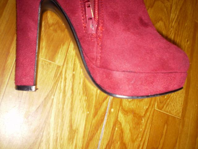 Puikios būklės (dėvėti tik 2 kartus, bet neseniai sugijo lūžusi pėda ir daktarai uždraudė nešioti aukštakulnius todėl ir parduodu) raudoni demisezoniniai batai, padidinto 36 dydžio (mano koja 37, bet tilpau lengvai). Su platformyte, todėl nesijaučia toks kulno dydis (beje, jis 12 cm).