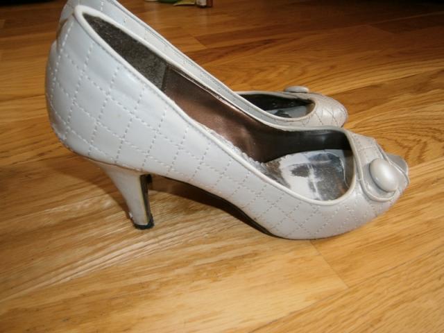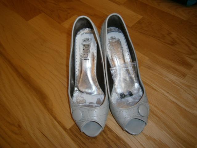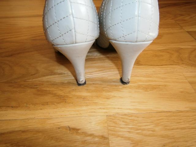 Pilki, yra pora naujų antkulnių, nuotr. matosi, vidinė dalis kiek nusitrynusi, bet avint nesimato, nes pėda tą vietą uždengia. Ties kulniuko apačia defektai matomi nuotraukoje. 37 d.