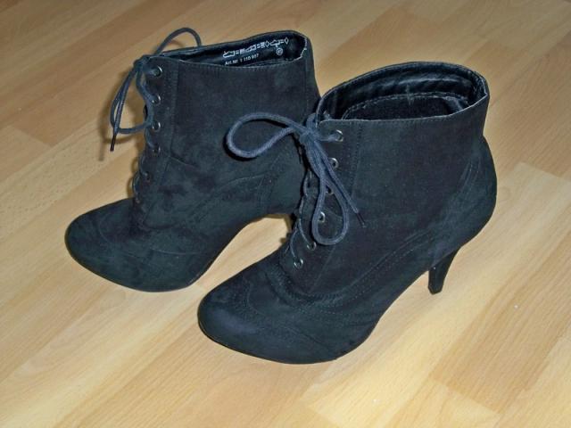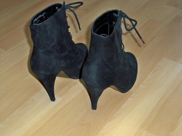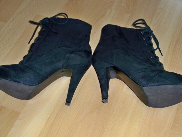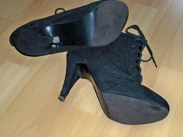 Nešioti, bet dar geros būklės ( šiek tiek kulniukai apdaužyti, matosi foto) aukštakulniai suvarstomi aulinukai. Labai gražus modeliukas. Dydis pilnai atitinka 40. Viršus yra zomšinė medžiaga, ne odiniai.