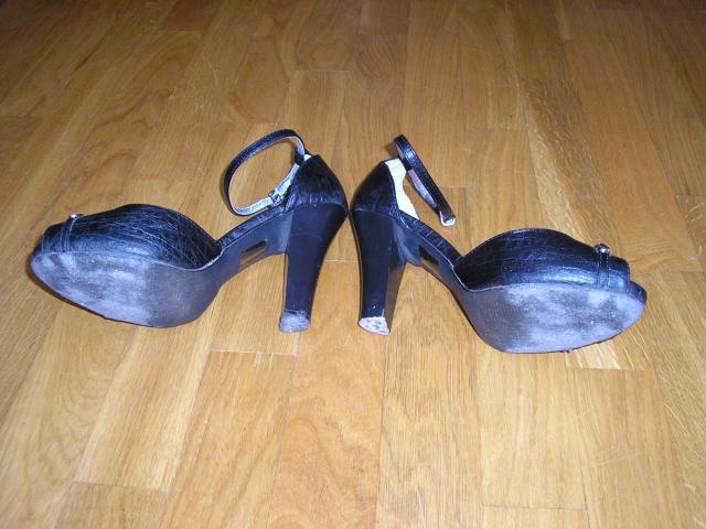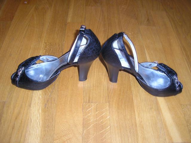 Aukstakulniai bateliai-basutes, labai patogi keltis nesijaucia aukstas kulnas. Vieno batuko kulniuka reiketu pakalti, o siaip tikrai dailus ir tvarkingi. Kulniuko aukstis 8cm. Vitpadis 23,7cm