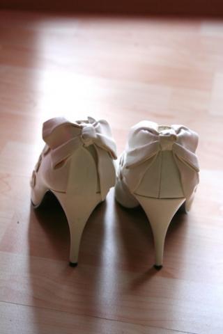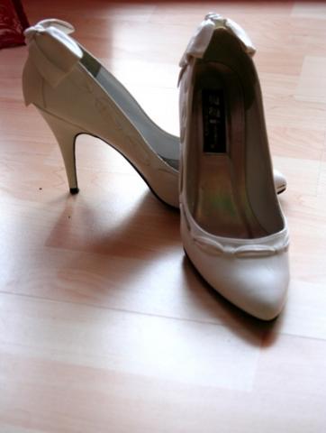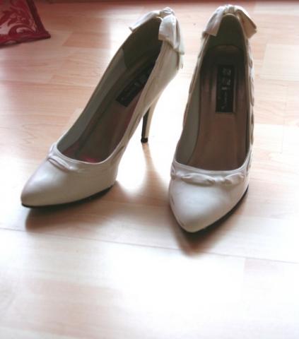 37 - 38 dydis. Avėti vieną kartą per vestuves. Kulniukas puikios būklės, bet nuo stovėjimo atsiradę odos įtrūkimų, bet avint nesimato.
