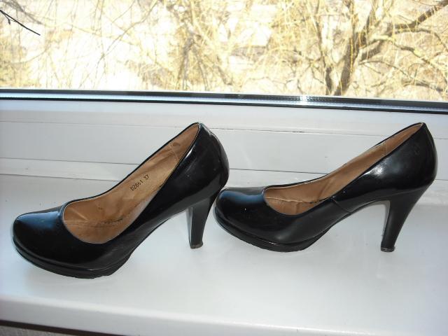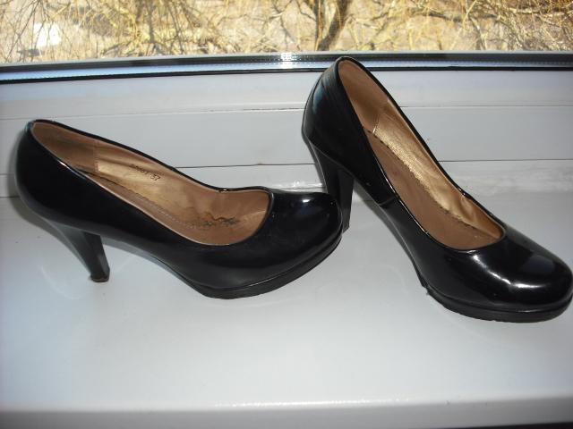 Gražūs aukštakulniai bateliai. Dydį rašo 37, bet aš nešioju 38 ir man geri. Kulnas 10 cm, o platformytė 1 cm.Vietomis yra nežymūs patrinimai. Yra defektukas - ant priekio yra keli dažų taškiukai, todėl pigiai parduodu. Galima derėtis :)