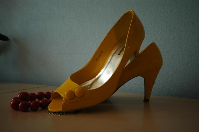 Aukštakulniai vasariški lakuoti geltoni bateliai