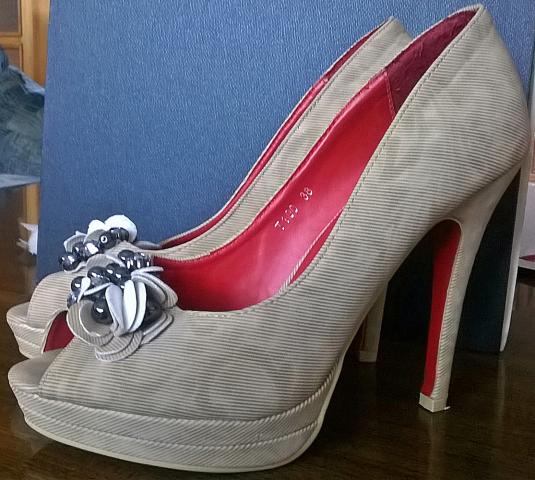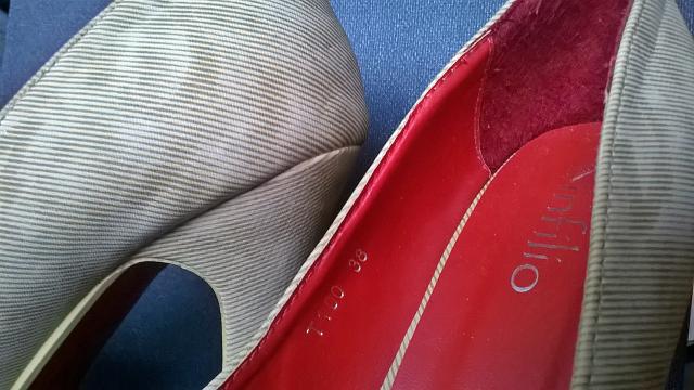 Šie aukštakulniai labai dailiai atrodys ant jūsų kojų! 12 cm kulniukas, padas bei batelio vidus raudonos spalvos. Bandyta juos panešioti namie, kad koja priprastų, bet taip ir neišvydę saulės šviesos...